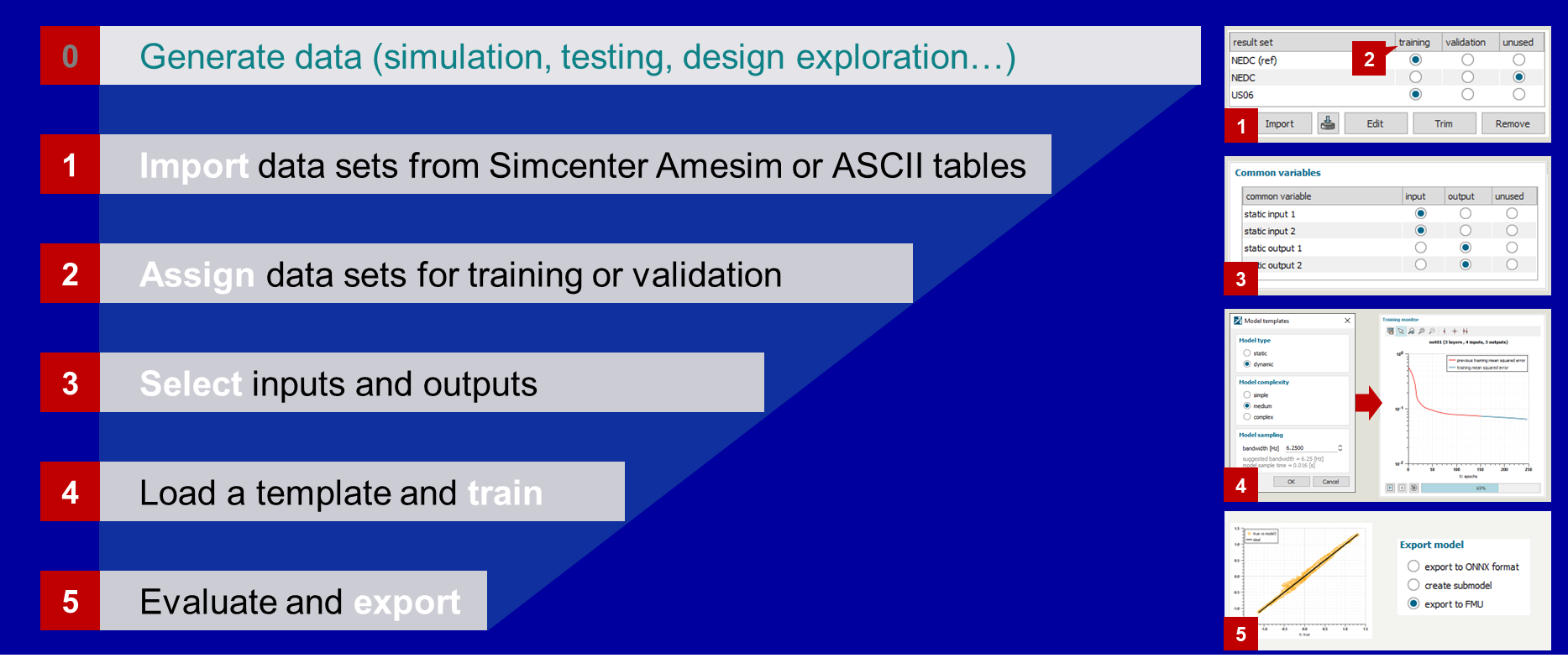 Neural Network Builder je integrovaný nástroj Simcenter Amesim (od verze 2019.2), který umožňuje: